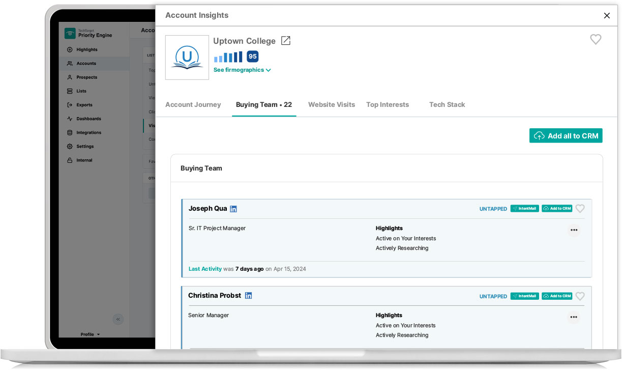Priority Engine’s Inbound Converter identifies the in-market accounts visiting your website, then connects you with the real members of the account buying team. Finally, it helps you prioritize and engage them across multiple marketing channels.
