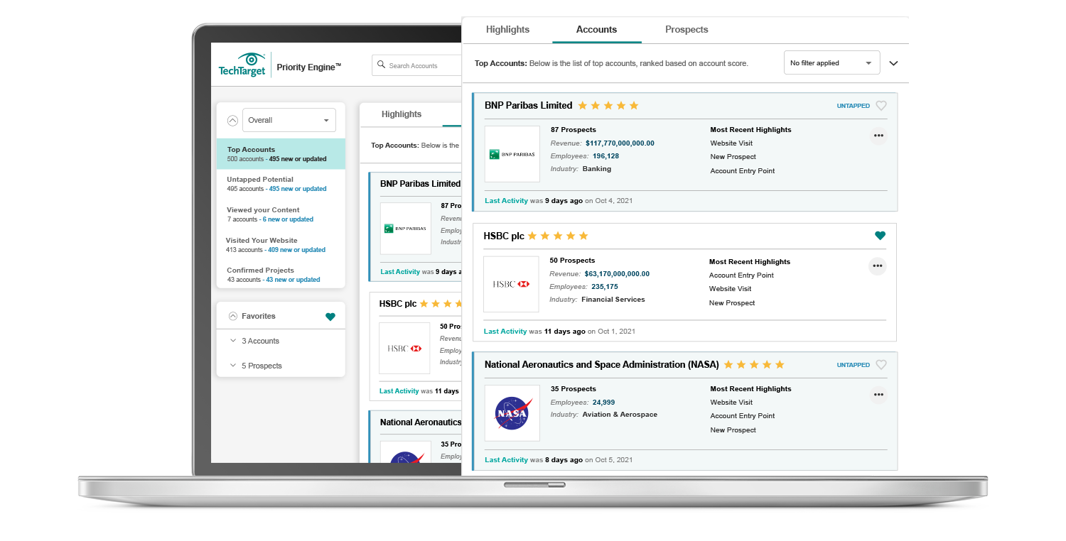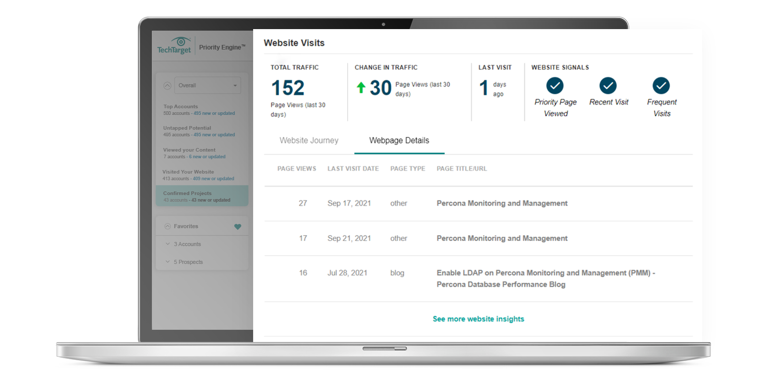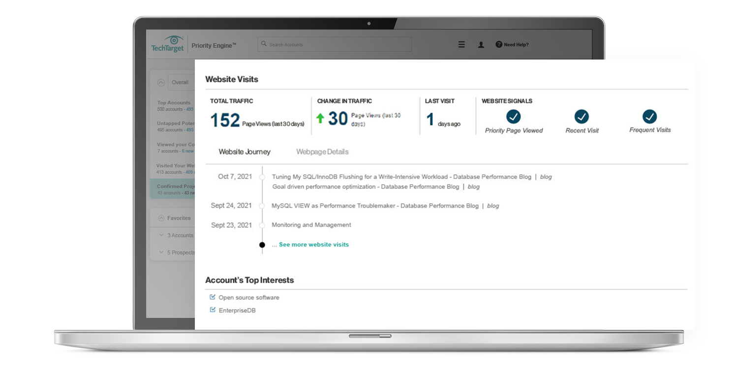 Being able to link our site visitors to TechTarget’s intent data and active prospects helps us easily pinpoint the most engaged accounts and deliver our sales team a list of prime prospects to focus on.”