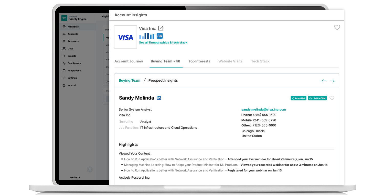Priority Engine connects you with active buyers: real people who are currently researching in your tech category. It tells you exactly what they’re interested in, so reps can easily personalize their outreach and break through. And IntentMail AI makes personalizing outreach even easier.