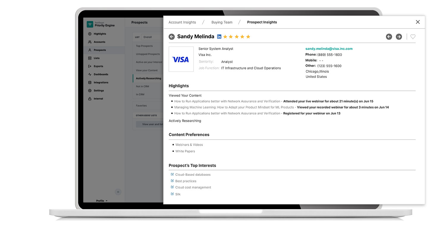 Priority Engine arms sellers with rich insights into buyer interests, the vendors they’re considering and the products they have installed. Reps can use these insights to drive pipeline faster by having more effective conversations and more compelling meetings.