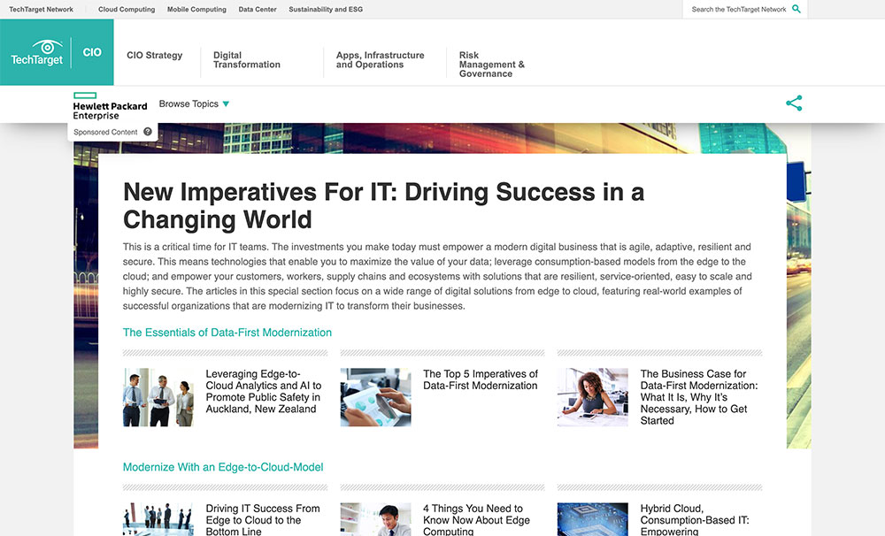 - Drive thought leadership and education with native content on a specific tech topic or across a broad market