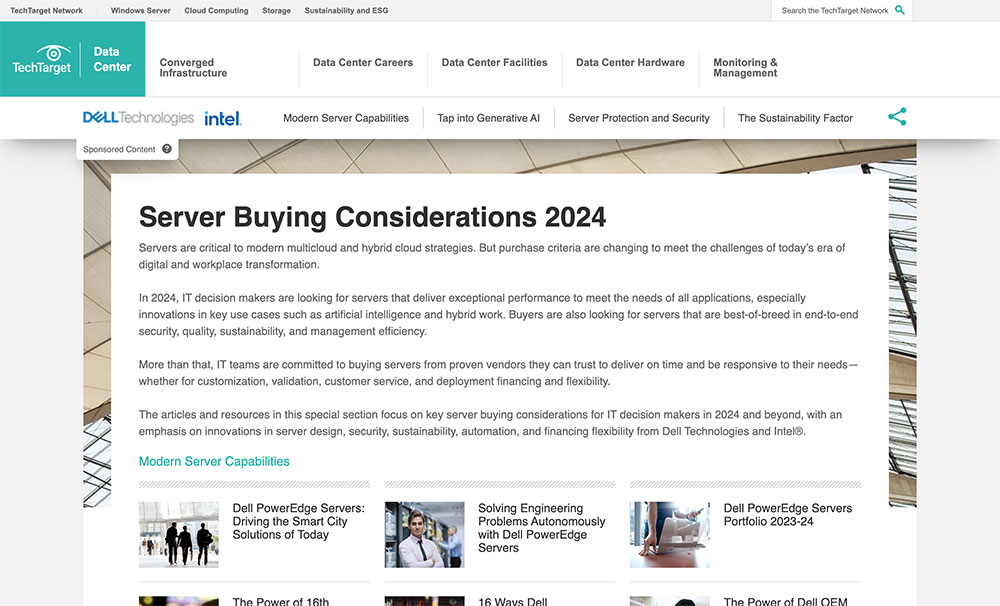 Create an immersive experience for tech buyers to engage your content while they’re making purchase decisions. Highlight an integrated collection of custom articles via Native Advertising—or build a destination, all-in-one content showcase with a Content Hub.