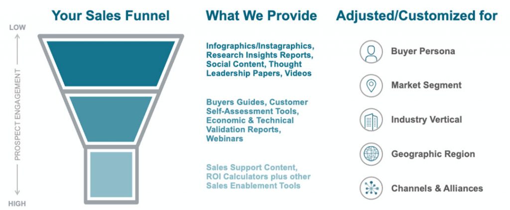 Buyers have different content format and channel preferences. You need to address these with a full toolkit of written, video, graphical and social formats mapped well to key stages of the buyer’s journey.